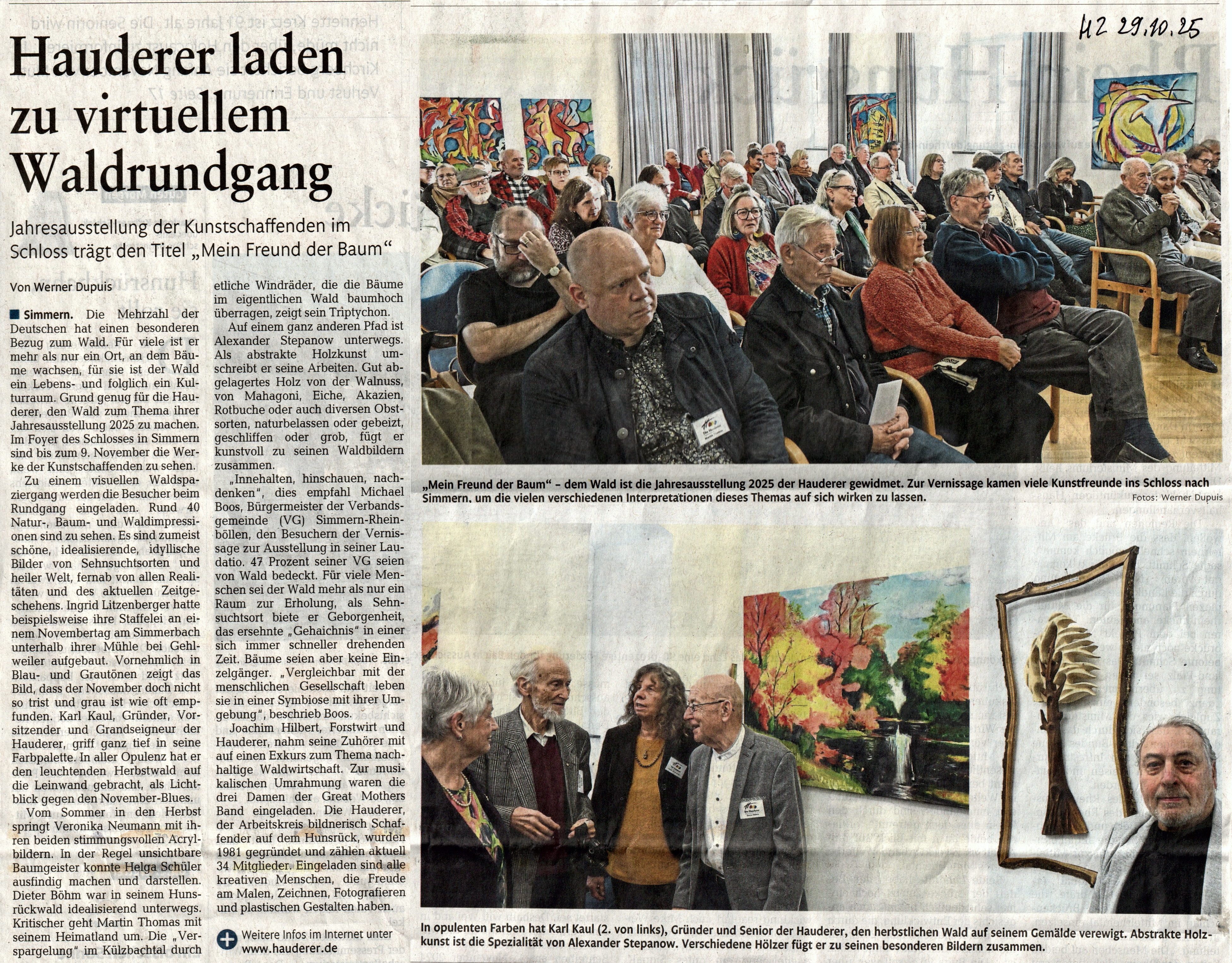Die Jahresausstellung 2025 findet im Simmerner Neuen Schloss vom 26. Oktober bis 9. November statt. Die Vernissage war am 26.10. um 15 Uhr. Das Motto unserer Ausstellung lautet "Mein Freund der Baum".