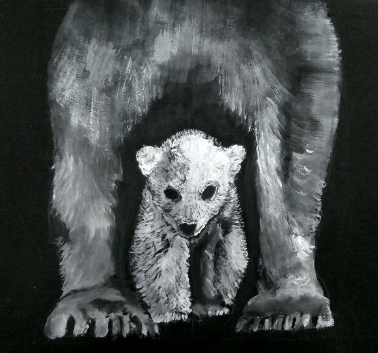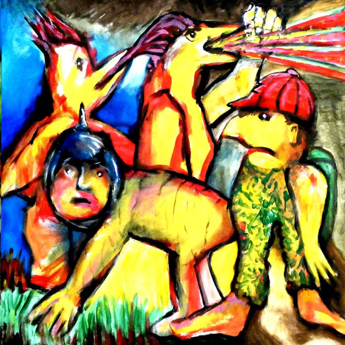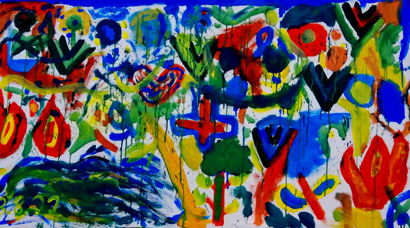 Meine Enkel malen zum ersten Mal gemeinsam auf einer großen Leinwand.